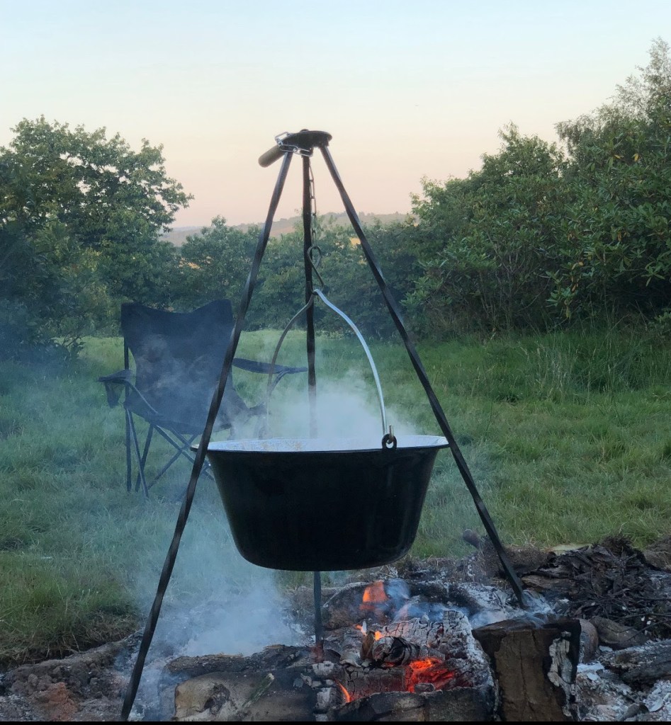 If you have a cauldron/ bogrács (!) the way to avoid standing over a fire for two hours is to pre-cook the meat in the wine after step 1. Take all the rest of the ingredients down to the fire, hunt around for stools or tables and arm your helpers (‘firemen’) with goggles and yourself with beer. Complete the rest of the recipe stages in the cauldron, adding the beef and its cooking liquid at the same time as the potatoes. If your fire is very fierce you might need to top up the stew with water to prevent burning.