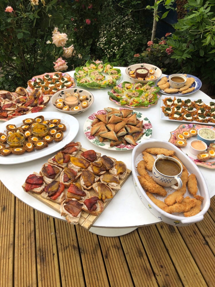 A Greek god of a pie, spanakopita (σπανακόπιτα) makes a stunning centrepiece to a big summer meal. It’s delicious hot or cold, vegetarian friendly and fairly cheap to put together. My recipe is based closely upon one in a book by Claudia Roden, who in turn credits it to an Athenian cookery writer, June Marinos. You can use the spinach & feta mixture to fill filo triangles, which make lovely canapés (pictured at the bottom).