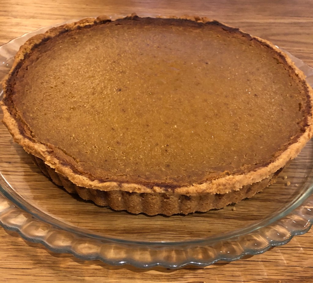 Patricia Lousada’s American Sampler (1985) was another book in the Sainsbury’s cookbook series that inspired family meals at Gale (see Greek Walnut Cake). It contains the definitive pumpkin pie recipe, from which I have not deviated at all over the years. The proportions of flour and butter look strange, being greater than the usual 2:1 ratio for shortcrust pastry, but the recipe works because the double cream enriches the pastry mix. Pumpkin pulp can be bought in cans in America – and in specialist shops here now – but it is simple to make your own: cut a small pumpkin into wedges, scraping out the seedy, fibrous centre, and wrap each wedge in foil. Bake in a hot oven (180 fan) for 50 minutes or until really soft, then scoop out the cooked pulp and allow to cool before making the tart filling.