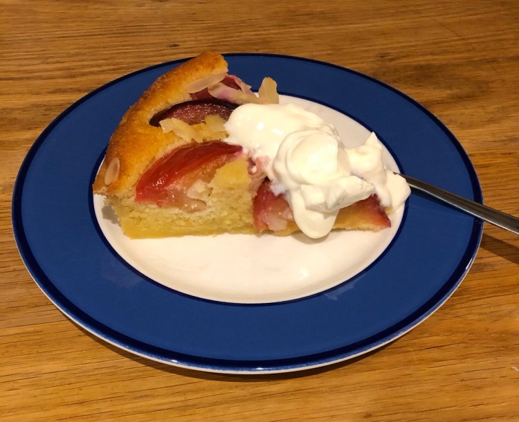 Bake in a preheated moderate to hot oven (160 fan) for 35-40 minutes until golden-brown on top. Serve warm or at room temperature, but don’t chill it before serving. Cream or crème fraîche would be the perfect accompaniment.