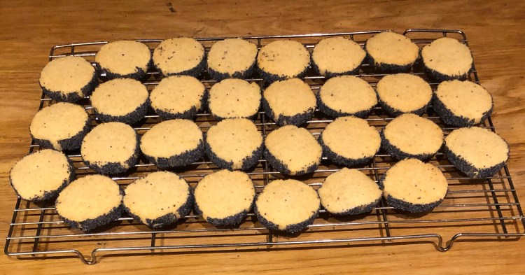 These are a savoury version of kilted highlanders, the demerara-coated shortbread biscuits that Great-Granny would often wheel out at tea time. They’re incredibly easy to make, arresting to look at and make a great accompaniment to pre-dinner drinks. Given that the recipe comes from Ottolenghi (his first book), you might be surprised to recognise all the ingredients on the list – no esoteric surprises here, especially for the Hungarian, for whom poppyseeds (mák) are a store-cupboard essential.