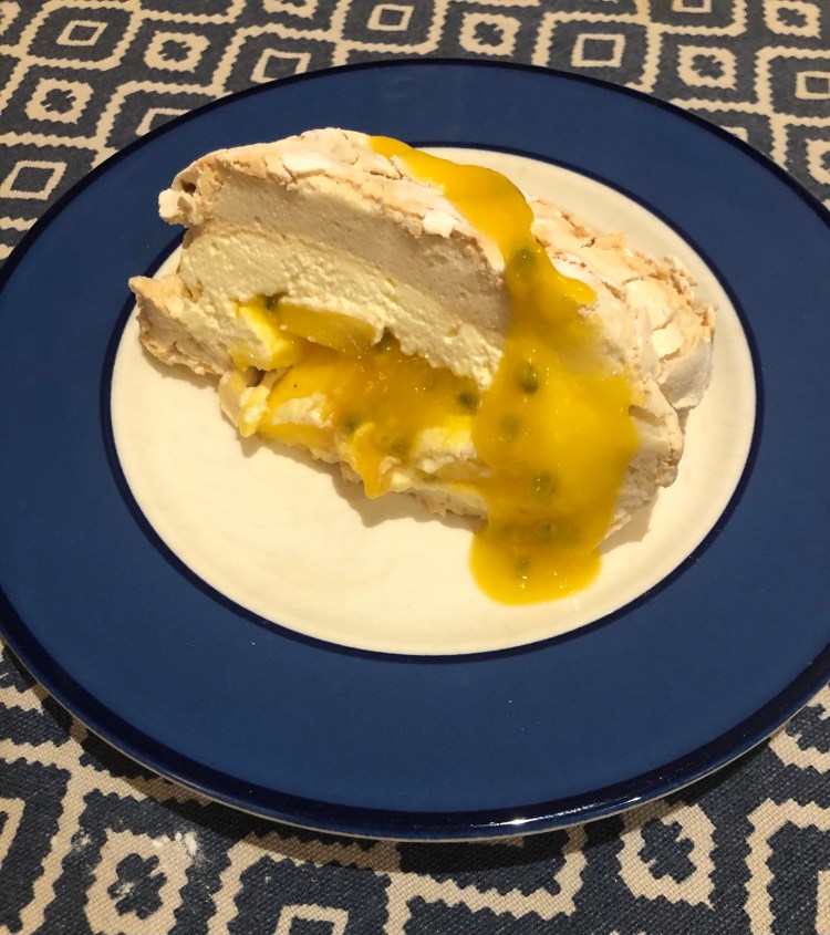 We’re approaching the end of the two-year publishing period earmarked for this blog back in January 2020. Reviewing the collection, I find relatively few pudding recipes, so here’s a trusted favourite to redress the balance. The source is Darina Allen’s excellent Ballymaloe Cookery Course book, a present from Grandma in 2007 which has proved to be both instructive and inspirational. This version is filled with mango and served with a passionfruit sauce, but you can use any seasonal fruits of your choice and serve with a complementary sauce, such as a raspberry coulis.